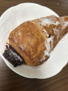 チョコレートが普通のチョココルネと違っていて、とろける感じもありつつ、サクサク食感もあるのが特徴かと思います。